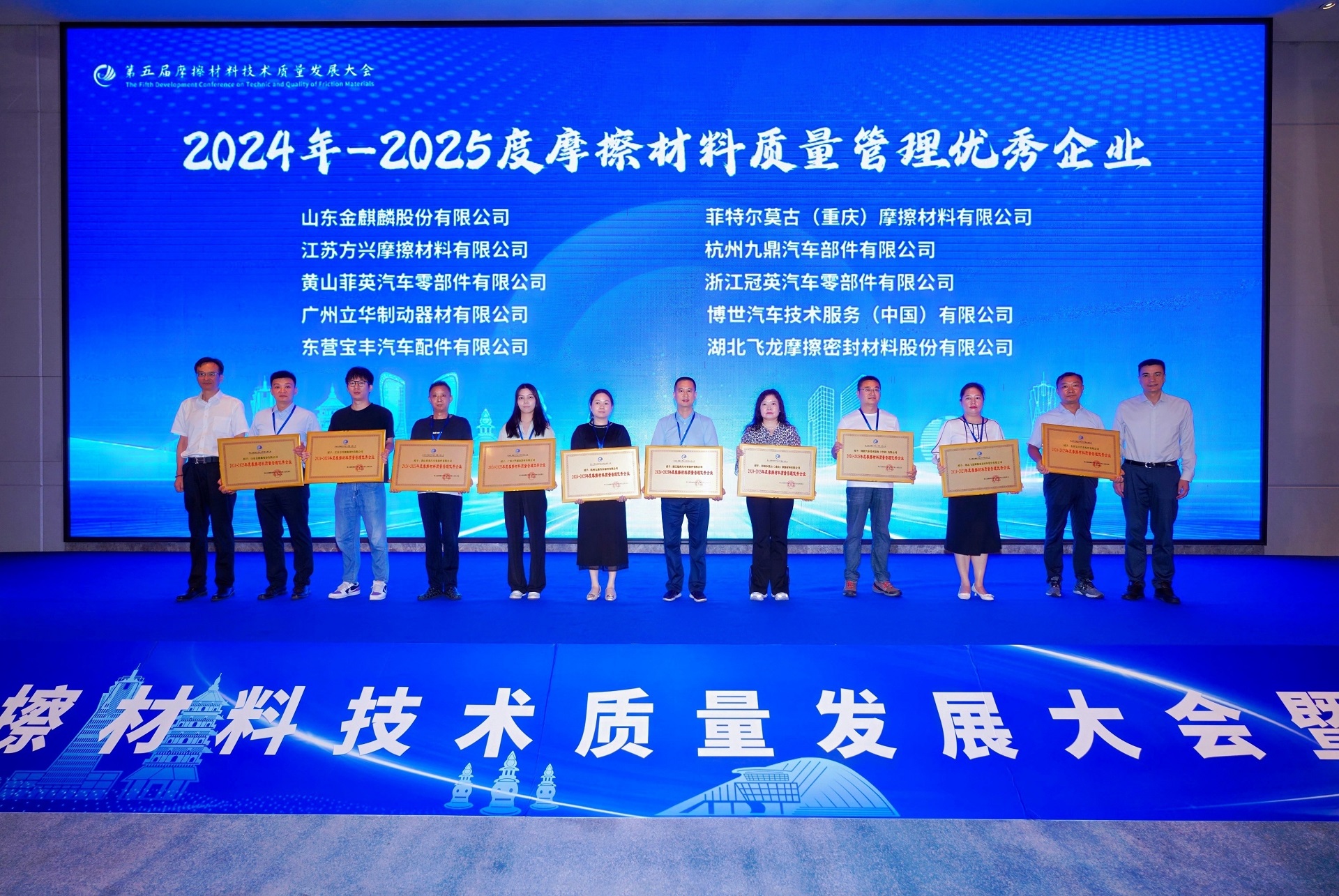 第五届摩擦材料技术质量发展大会黄山菲英再度荣获行业奖项!